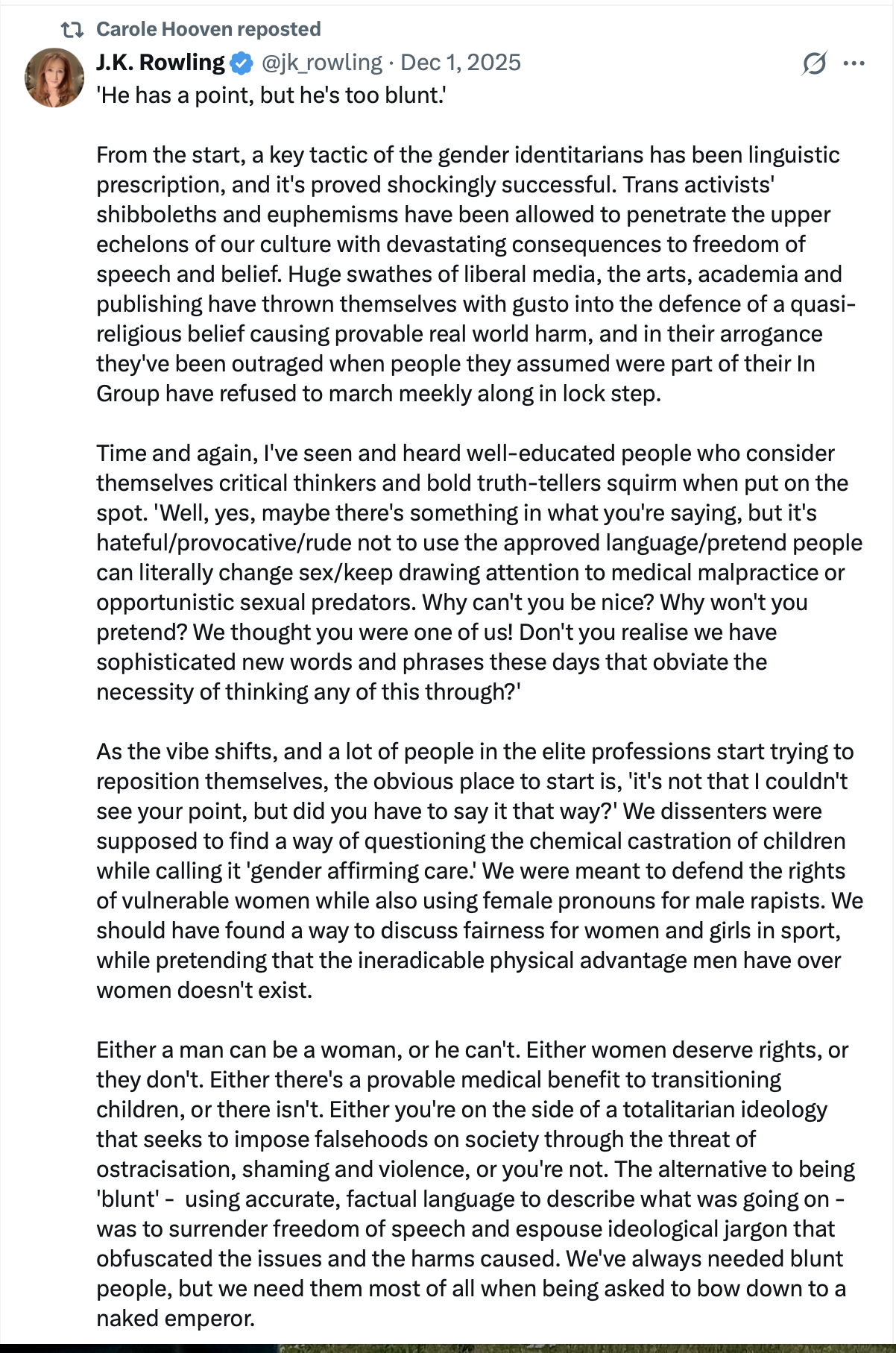 These practices are driven by ideological activism rather than sound science, and he describes them as an unregulated experiment on vulnerable children—many of whom, he says, have autism, mental health issues, or trauma histories. He believes the compassionate approach is to affirm children as they are without medical intervention.